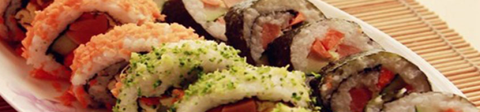 8 Ura Maki Omelett & Gurke, 8 Ura Maki Spargel & Frischkäse, 6 Hoso Maki Kürbis, 6 Hoso Maki Avocado, 6 Hoso Maki Rettich, 6 Hoso Maki Gurke, 2 Nigiri Inari