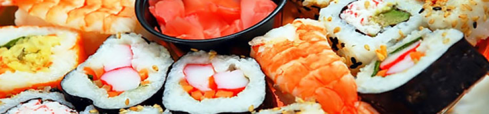8 Ura Lachs Gurke, 8 Frischkäse Garnelen, 6 Futo Maki Tempura, 6 Hoso Maki Avocado, 6 Hoso Maki Kürbis