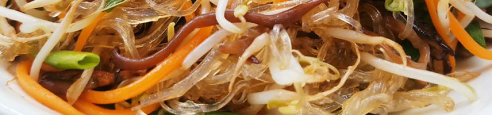 Reisnudelschale mit Frühlingsrolle, Salat und Kräutern,s erviert mit Fisch-Limetten-Soße (lauwarm)