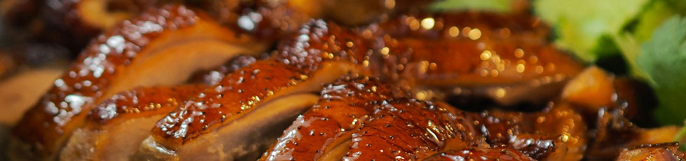 Frühlingsrolle Oder Pekingsuppe, Knusprige Ente, Hühnerfleisch Gebacken In Süß-Sauer-Soße, Rindfleisch Mit Hoisin-Soße, Nachtisch: Gebackene Banane